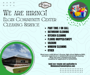 Elgin Home Of The Catfish Stomp ONLINE PAYMENTS CITIZEN COMPLAINT FORM EVENTS ELGIN WEATHER Pay Your Utility BillElgin Town HallTown CouncilAccess Town Directory Potter ParkCommunity Building Rental50th Annual Catfish Stomp Business FormsBusiness LicensesList of Elgin Businesses NEWS We Are Hiring Town of Elgin Christmas Tree Lighting Open Position Zoning Administrator More News >>> EVENTS Town Council Meeting Sandhills Medical Mobile Unit Sandhills Medical Mobile Unit Town of Elgin Christmas Tree Lighting More Events >>> SMALL TOWN, BIG HEART